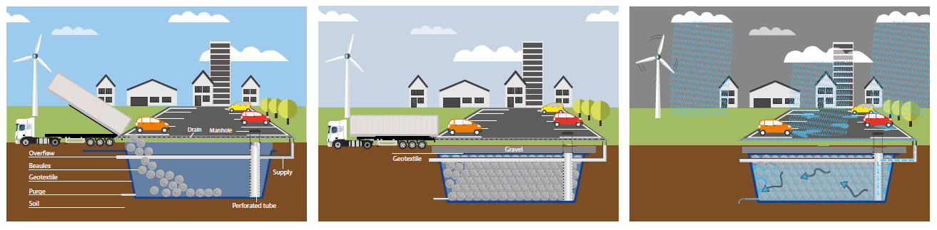 De kunststof ballen van Beaulex die worden gebruikt in regenwaterbuffersystemen zijn duurzaam en fungeren als substraatbuffer. Beaulex-ballen zijn gemaakt van kunststof en worden onder verharde oppervlakken gegoten om een duurzame oplossing te creëren voor regenwaterbuffer.