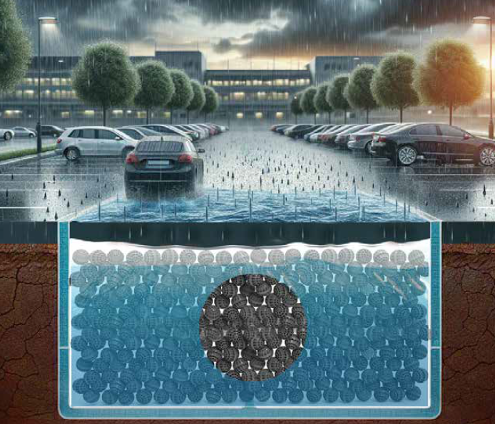 Regenwaterbuffersystemen worden gebruikt om de belasting te verminderen die wordt veroorzaakt door overmatige regenval op verharde oppervlakken in overstromingsgevoelige gebieden.